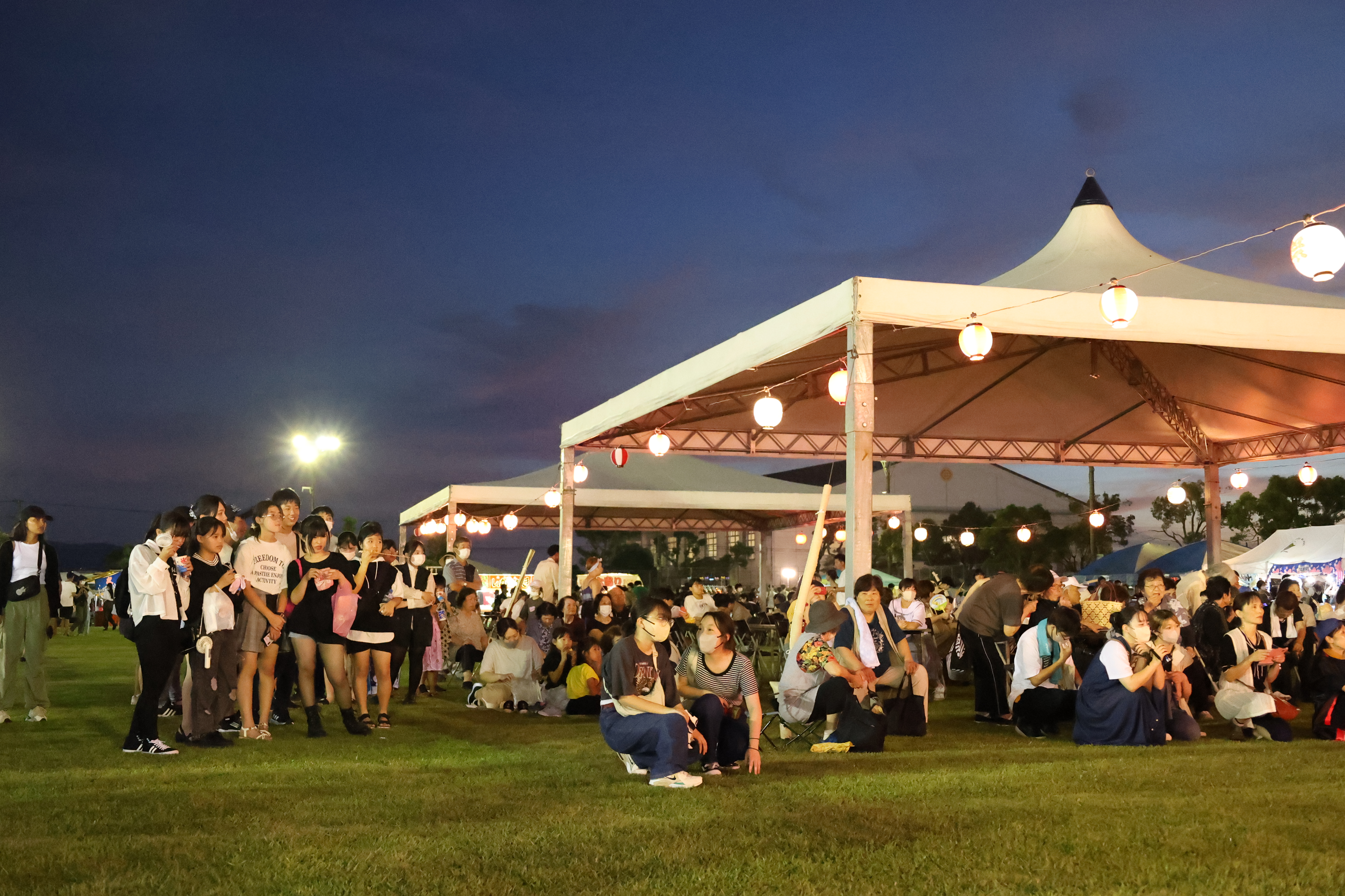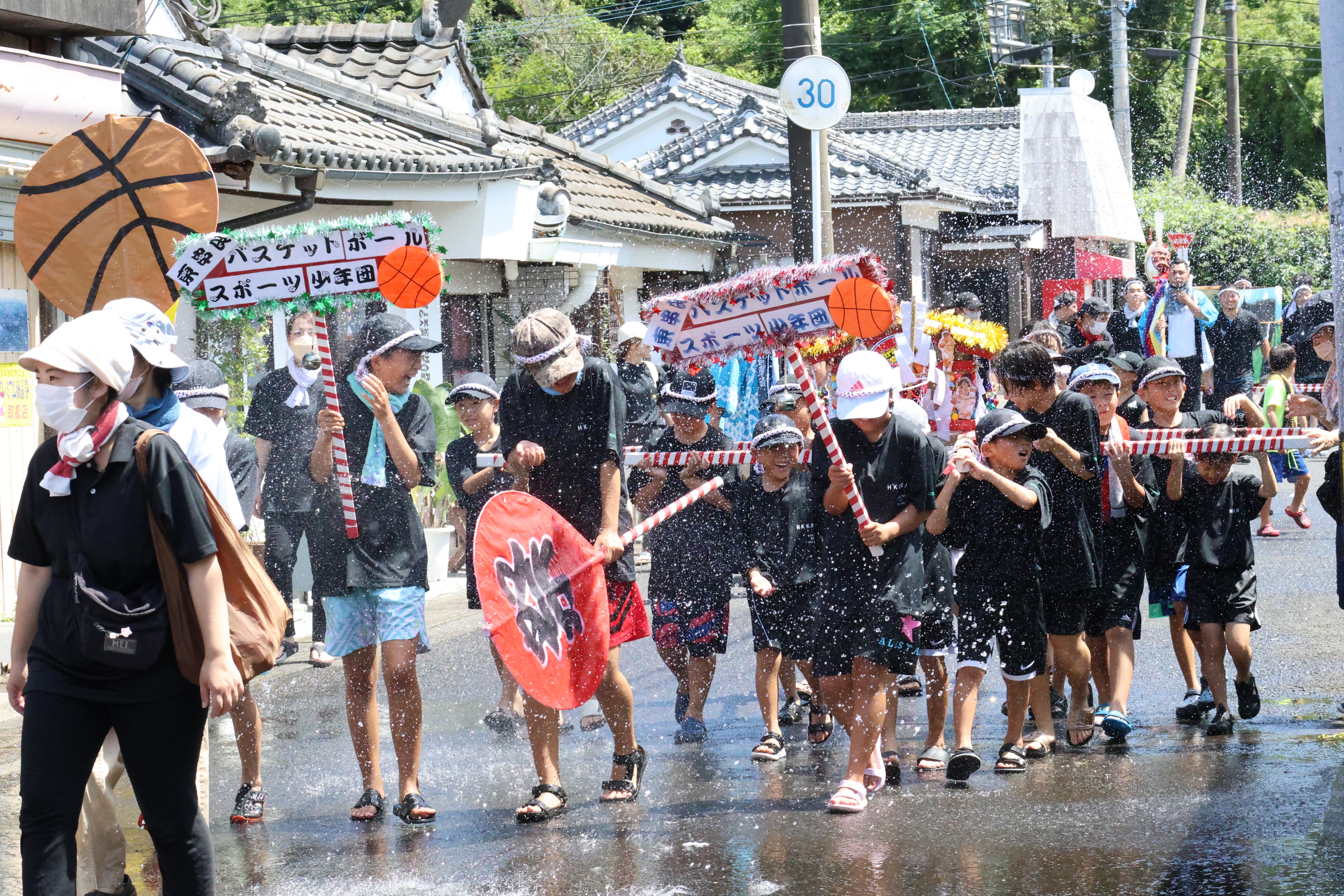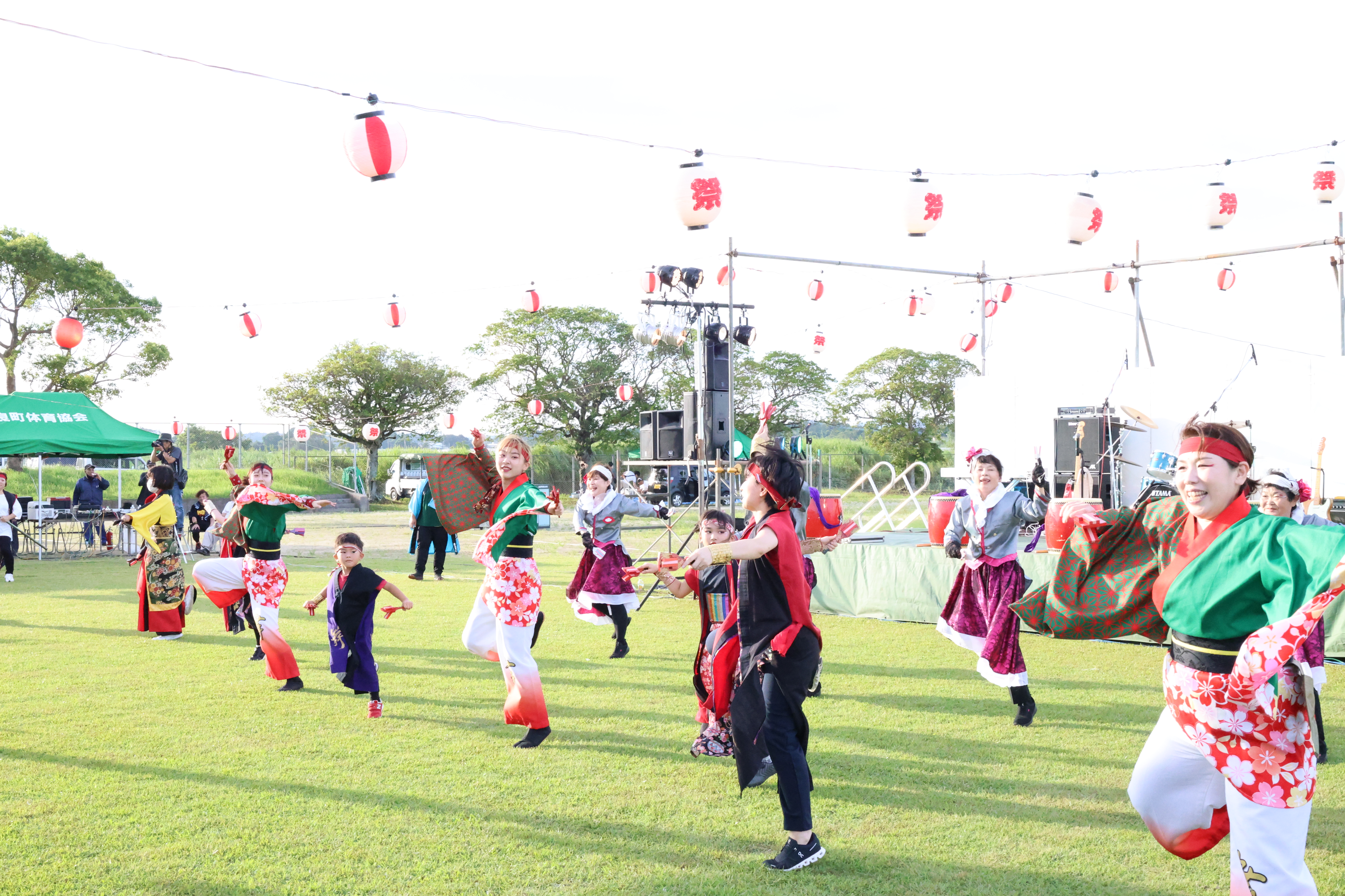 東串良町の夏の風物詩である祇園祭は、商売繁盛を祈る祭で、豊栄集落内にある大山津見神社で神事を行った後、山車やみこしが豊栄集落を練り歩きます。 夜の部ではステージショーや子ども向けのイベントなどもあり、チームごとに「ひがしくしら音頭」や「ハンヤ節」を踊り、技術と創意工夫を競い合います。特産品や商品券が当たる大規模抽選会も開催され、にぎやかな一日となります。
