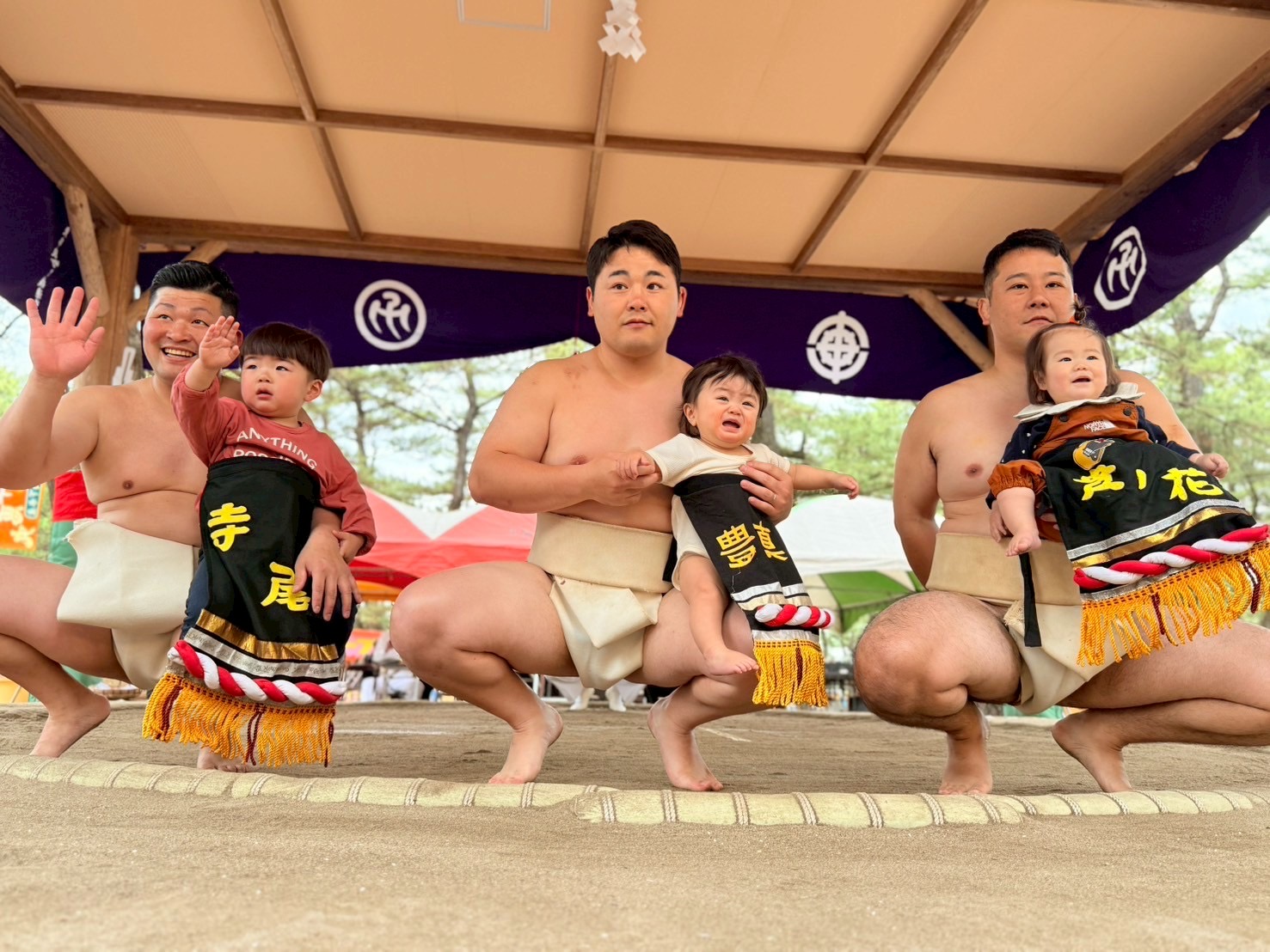 約300年の歴史を誇る伝統行事。円山公園内の相撲場で、乳幼児による「赤ちゃん土俵入り」や、子どもたちによる本格的な相撲大会が行われ、世代を超えた交流と笑顔が広がる一日となります。また、取組の合間には「柏原相撲甚句踊り」が披露され、町の無形民俗文化財として大切に継承されています。