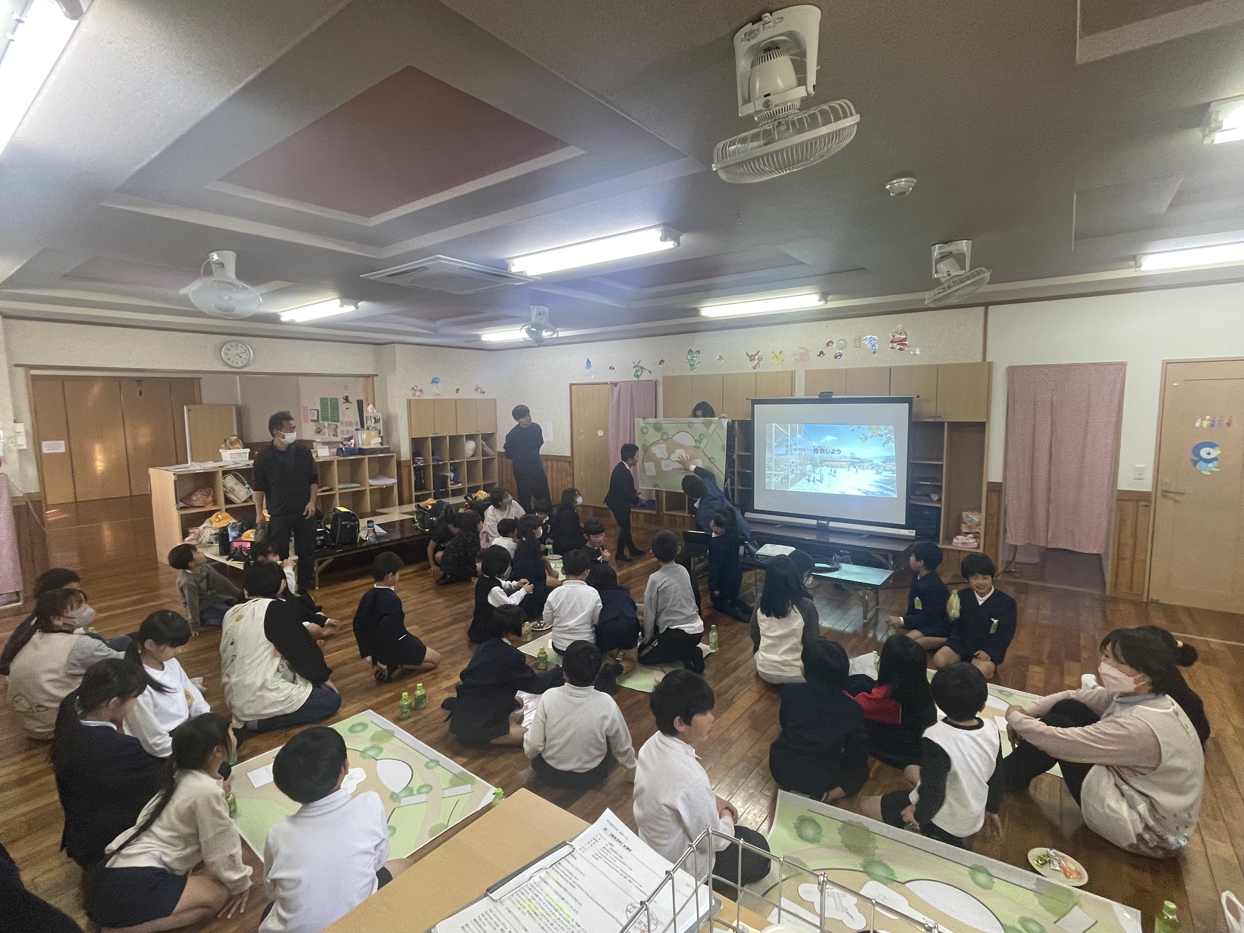 今回のテーマは複合施設敷地内における「屋外遊具」についてで、ワークショップ開催に先立ち、町内の保育園、幼稚園、小学校の子どもたちに協力をいただき、設置してほしい遊具の人気投票を実施しました。当日は、その人気投票の結果発表からスタートし、続いて行われたグループワークでは「遊具の設置や遊び方」について遊具エリアの図面等を用いながら、子どもたち同士で自由に意見を出し合ってもらいました。最後には、グループごとに話し合った内容を発表して全体で意見を共有し、会場は終始にぎやかで、活気にあふれていました。 今回のワークショップや事前の人気投票は、町内の子どもたちに複合施設整備事業を知ってもらい、身近に感じてもらうことを第一の目的として実施しました。いただいた意見は今後の遊具選定や配置計画の参考とし、子どもたちが期待する、楽しめる遊具施設を目指していきます。