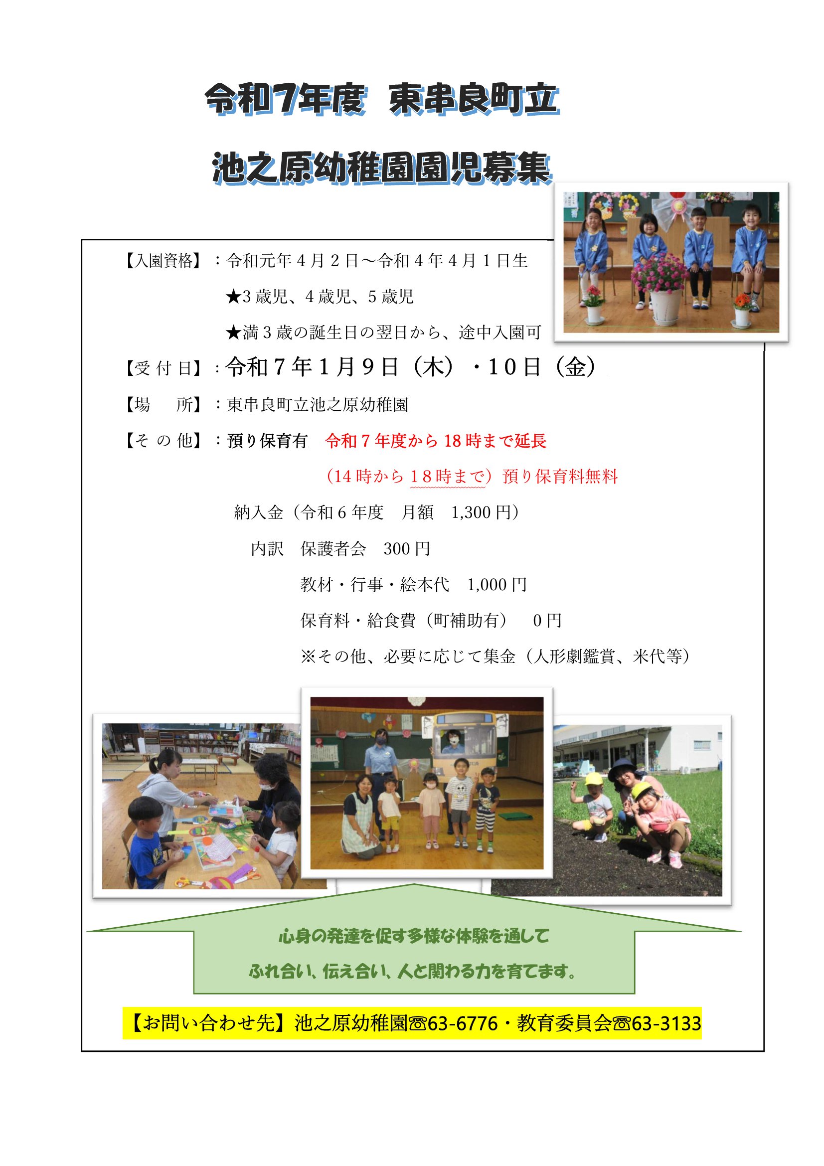 令和7年度東串良町立池之原幼稚園園児募集のご案内
