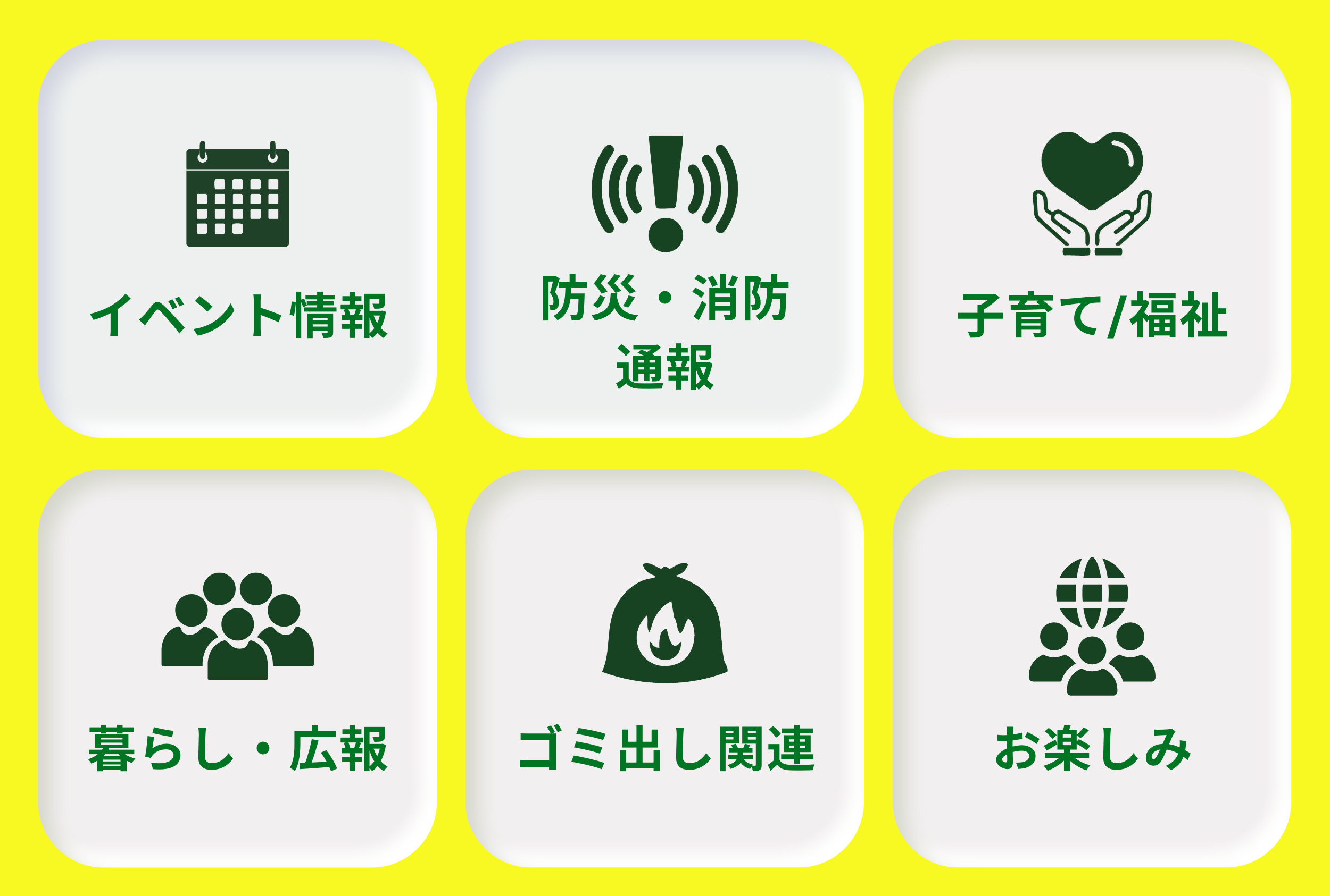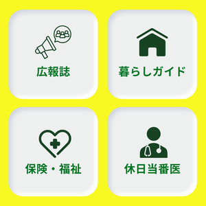 保険・福祉(各種申請やお知らせ)、休日当番医など情報をご確認いただけます。