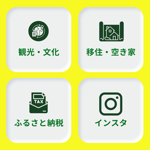 観光・文化(イベント情報など)、移住・空き家(補助金や空き家バンク)、